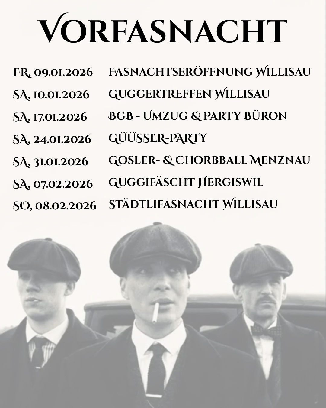 Tourdaten Fasnacht 2026